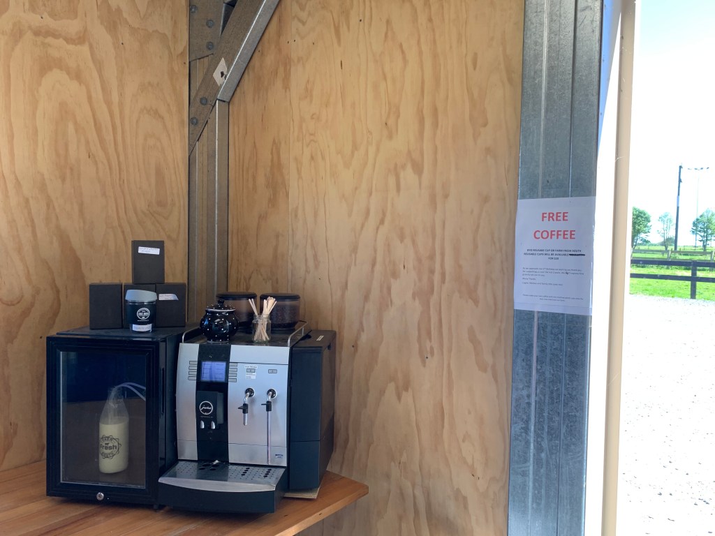 Notice the small fridge which houses the Free-range eggs for which ones pays by putting the desired amount (cost/rate) into an envelope, superscribing it and pooping it into the wooden box attached on the opposite wall! No one’s watching, mind you – it is not supervised either!